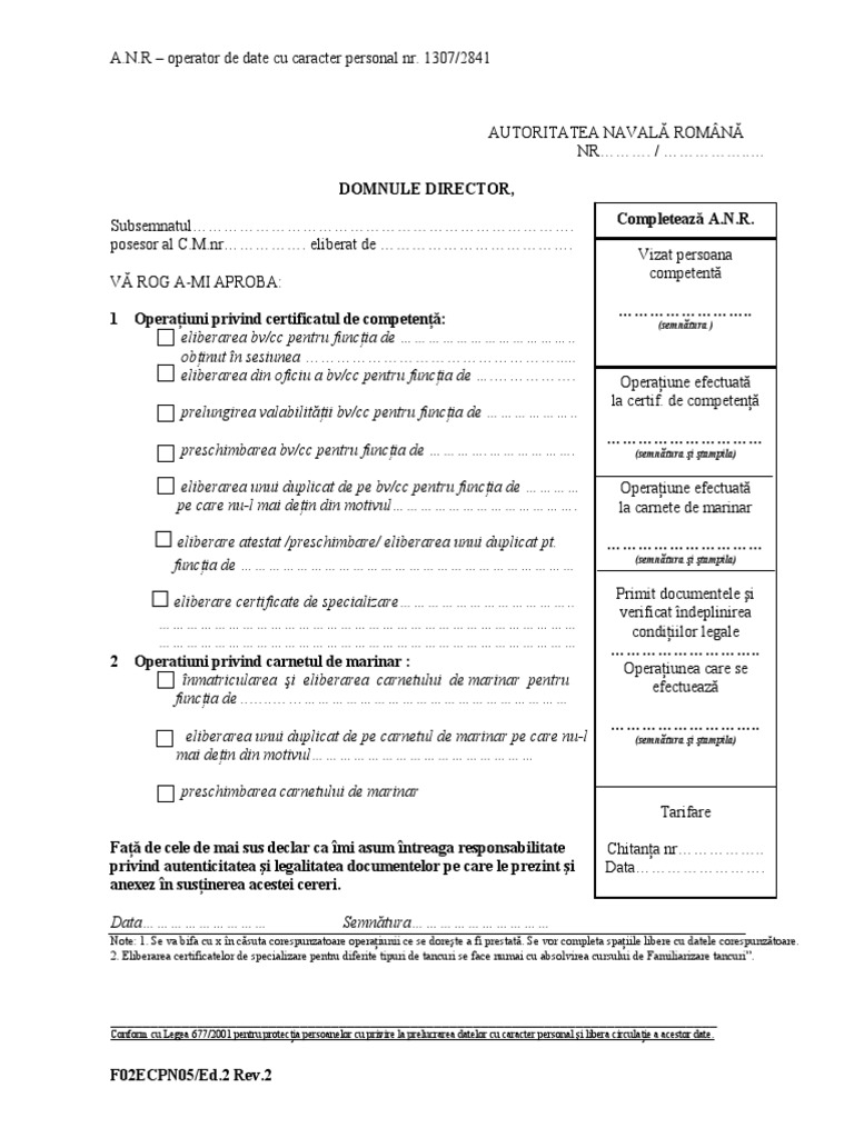 Cerere Eliberare Prelungire Duplicat Documente Maritime