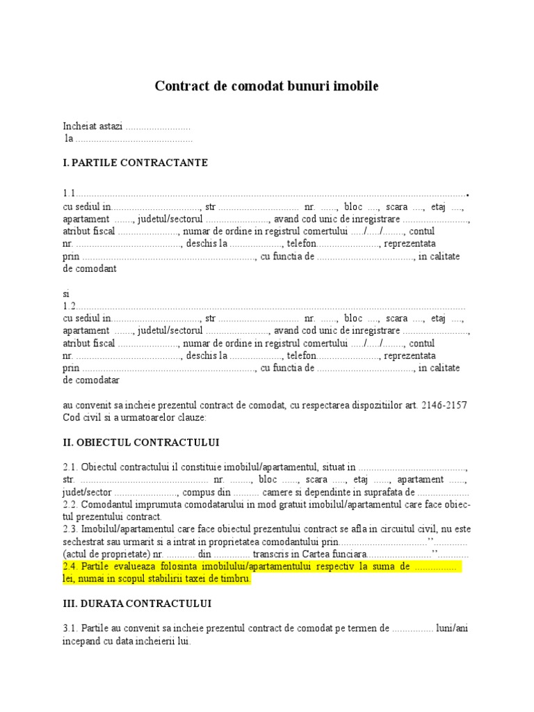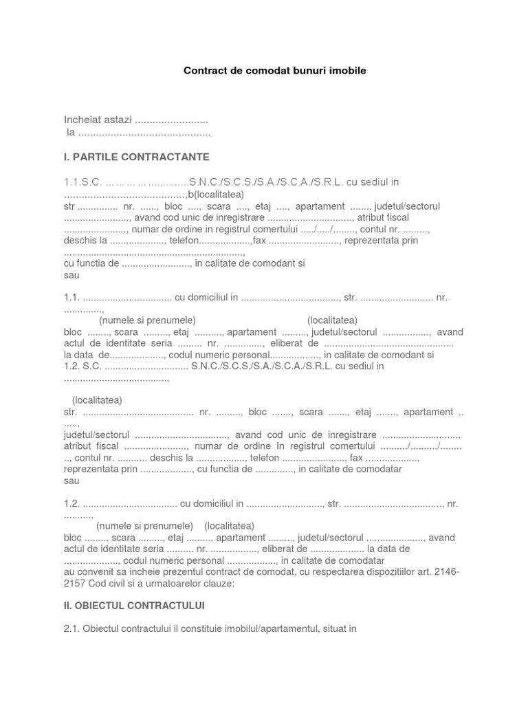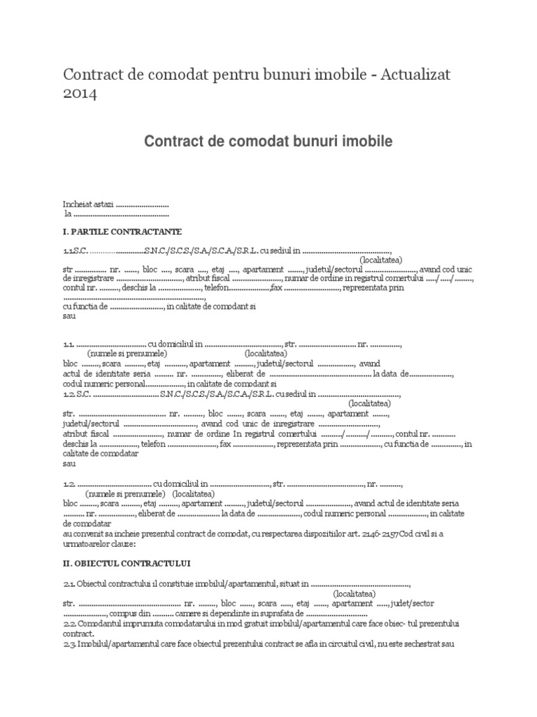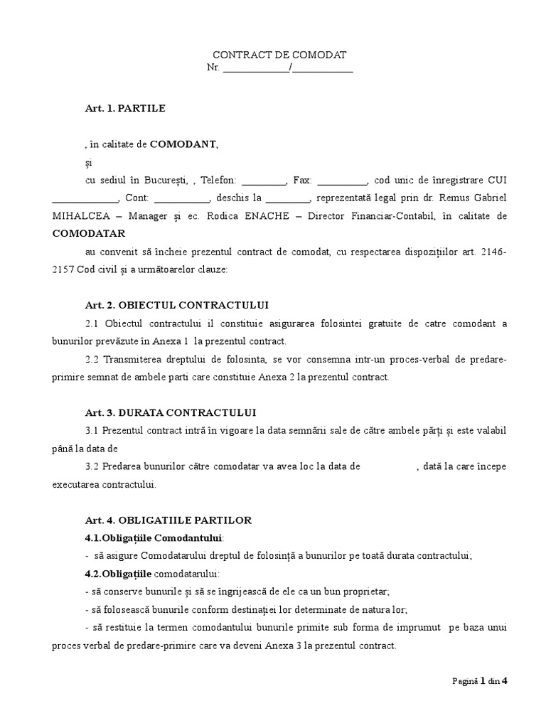 Contract De Comodat Imprumut De Folosinţă Pdf Document