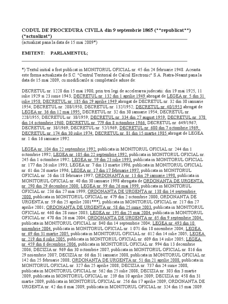 Codul De Procedura Civila Actualizat 15 05