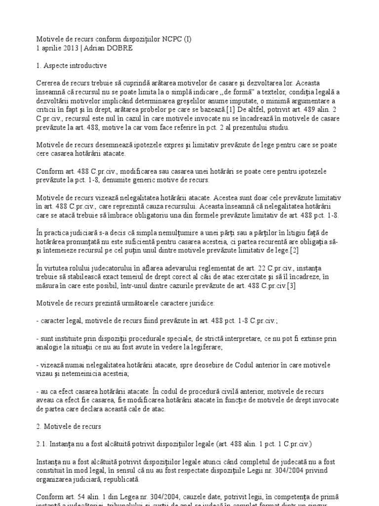 Motivele De Recurs In Ncpc 1