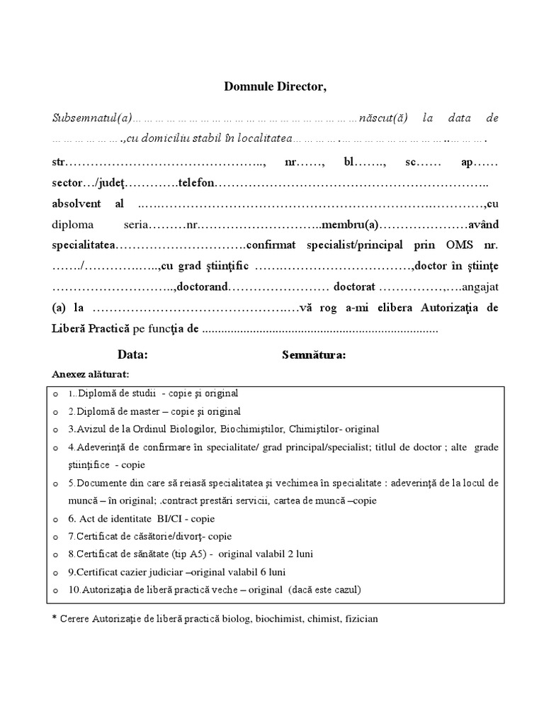 10 Cerere Autorizatie De Libera Practica Biolog Biochimist Chimist Fizician