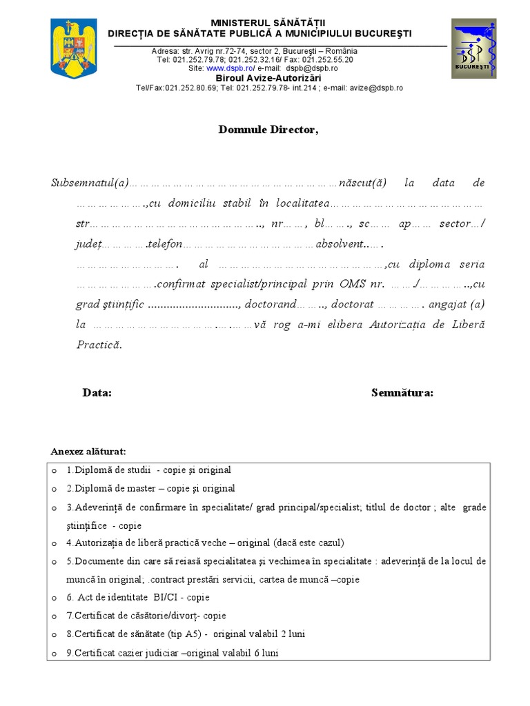 10 Cerere Autorizatie De Libera Practica Biolog Biochimist Chimist Fizician