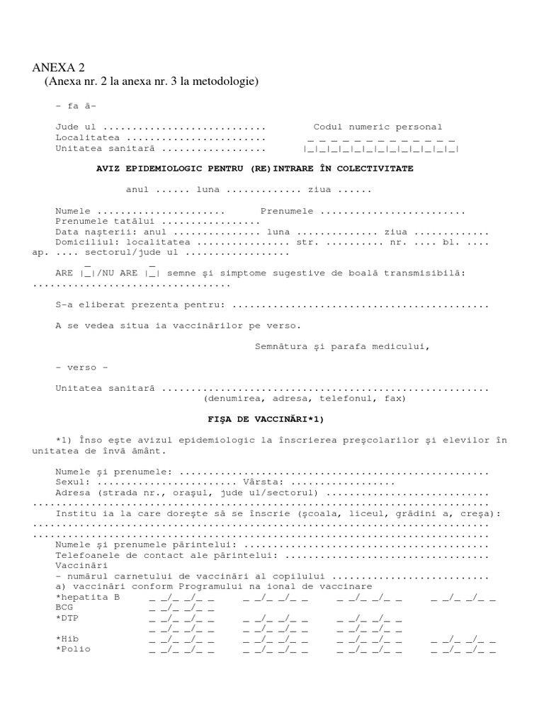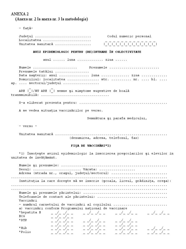 Aviz Epidemiologic Pentru Intrare In Colectivite Aviz Epidemiologic Dovada De Vaccinare Formular Preturi