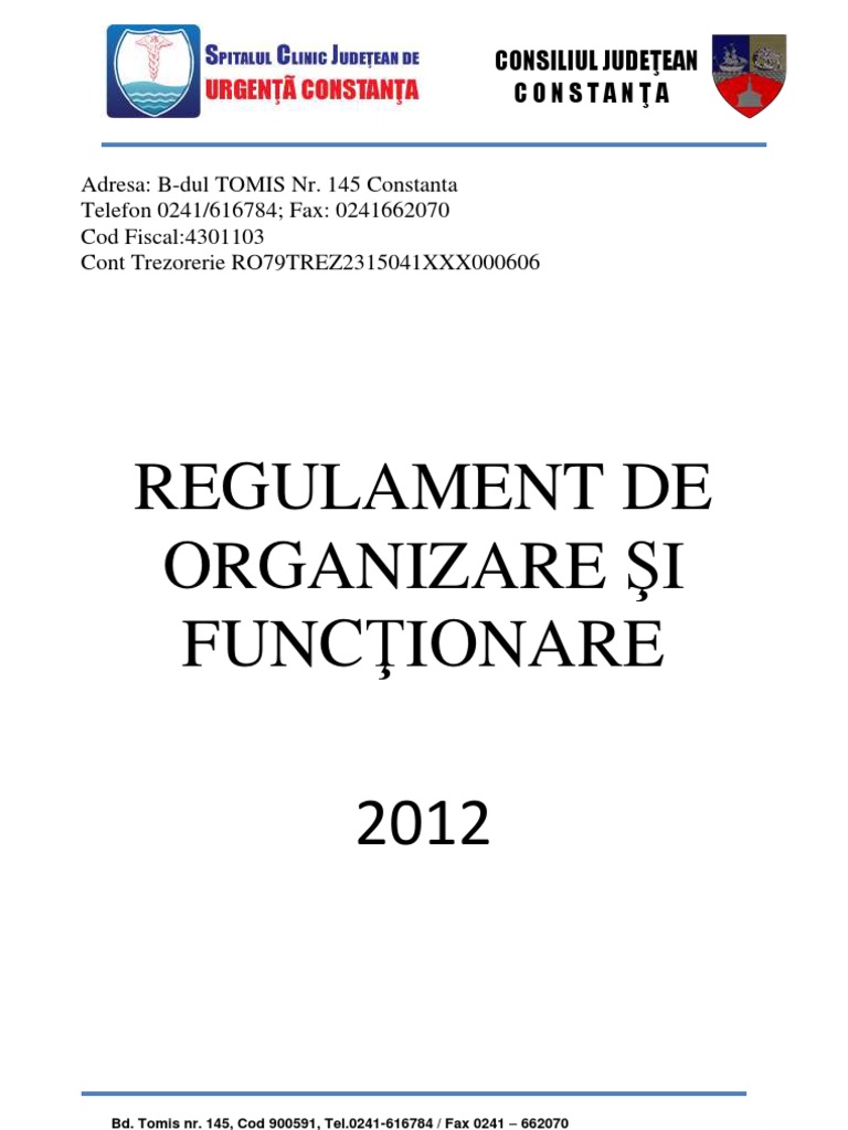 Regulament De Organizare Si Functionare Spitalul De Urgenta Bacau