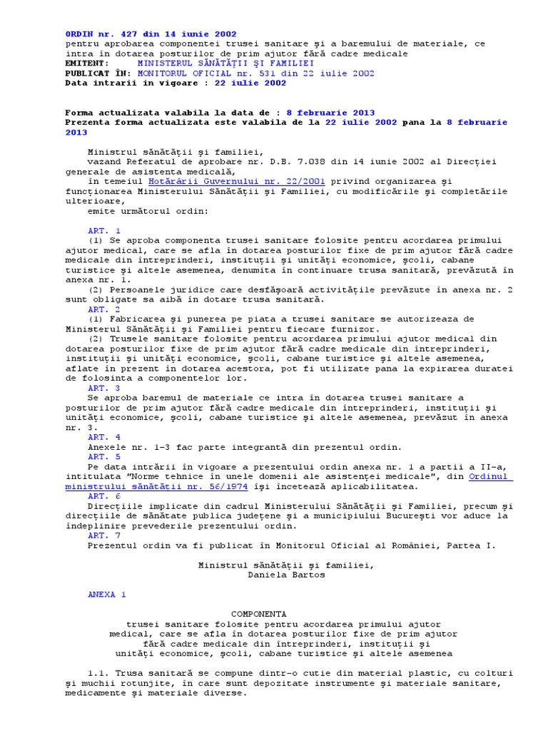 Ordin 427 2002 Trusa Sanitara