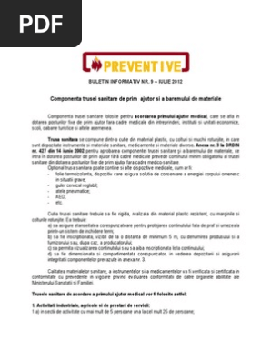 9 Componenta Trusei Sanitare De Prim Ajutor Si A Baremului De Materia