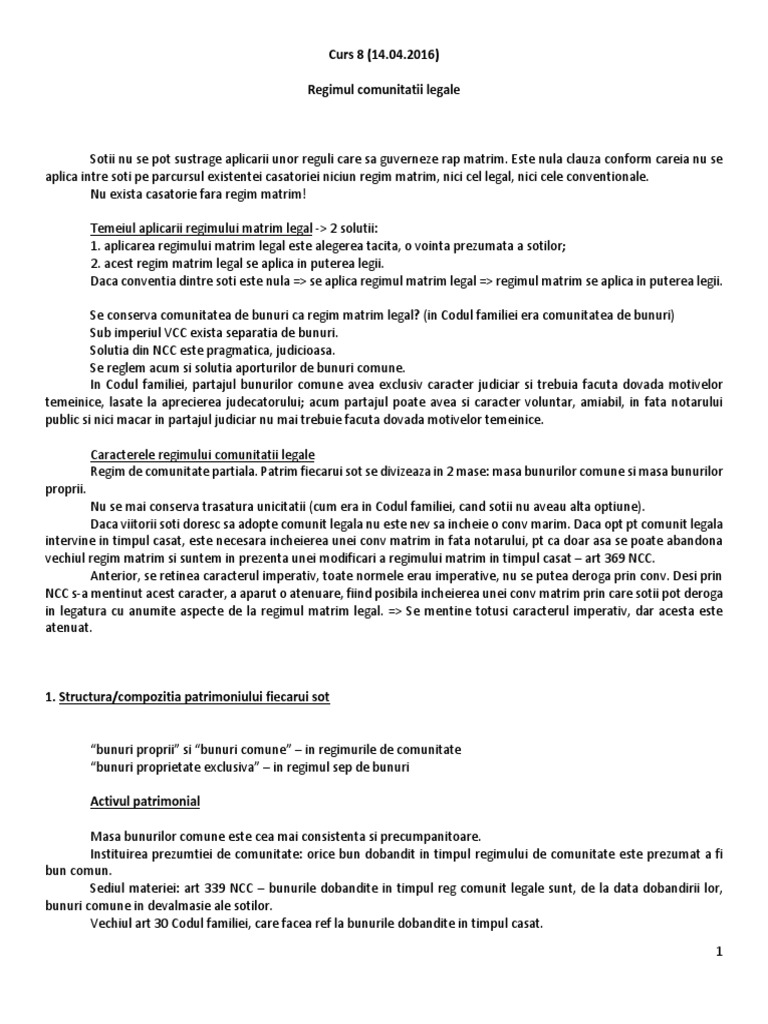 Curs 8 14 04 2016 Regimul Comunitatii Legale