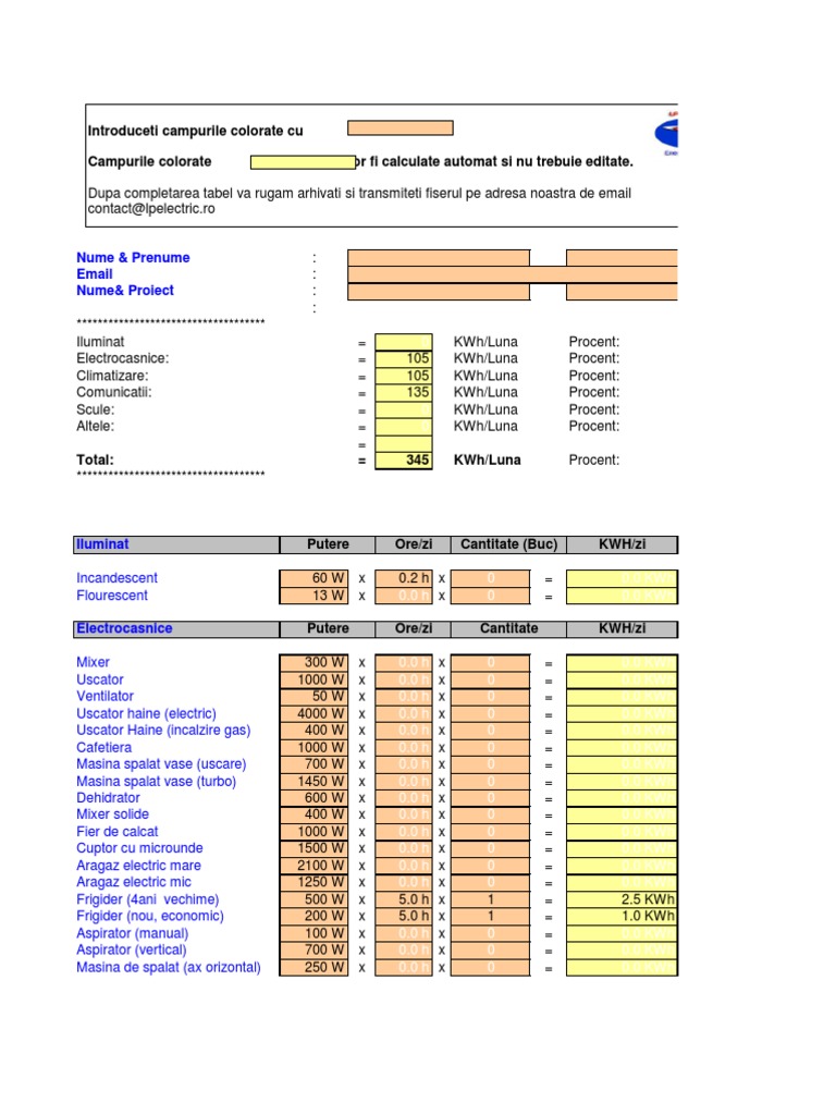 Calculul Sarcinii Electrice și A Consumului De Energie Foaie De Calcul Ms Excel Scheme Electrice și Electronice