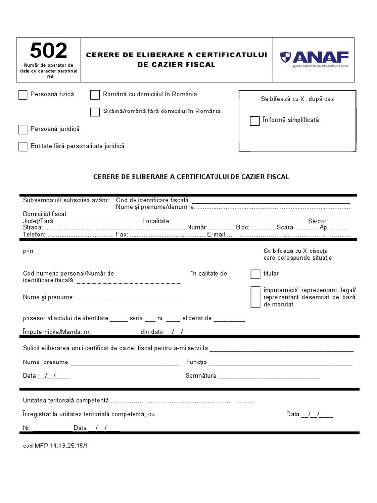 Formular 502 Cerere Eliberare Cazier Fiscal Persoana Fizica Pdf Document