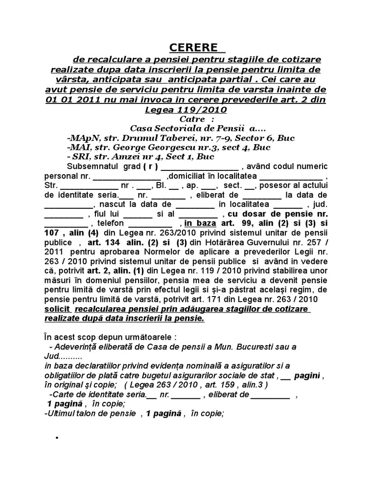 Cerere De Recalculare Pensie
