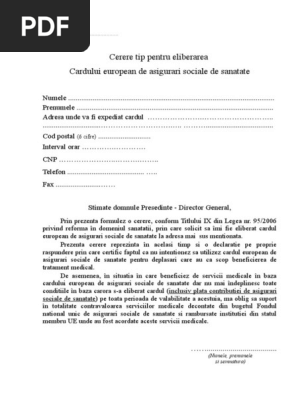 Cerere Tip Pentru Eliberarea Cardului European De Asigurări Sociale De Sănătate Doc