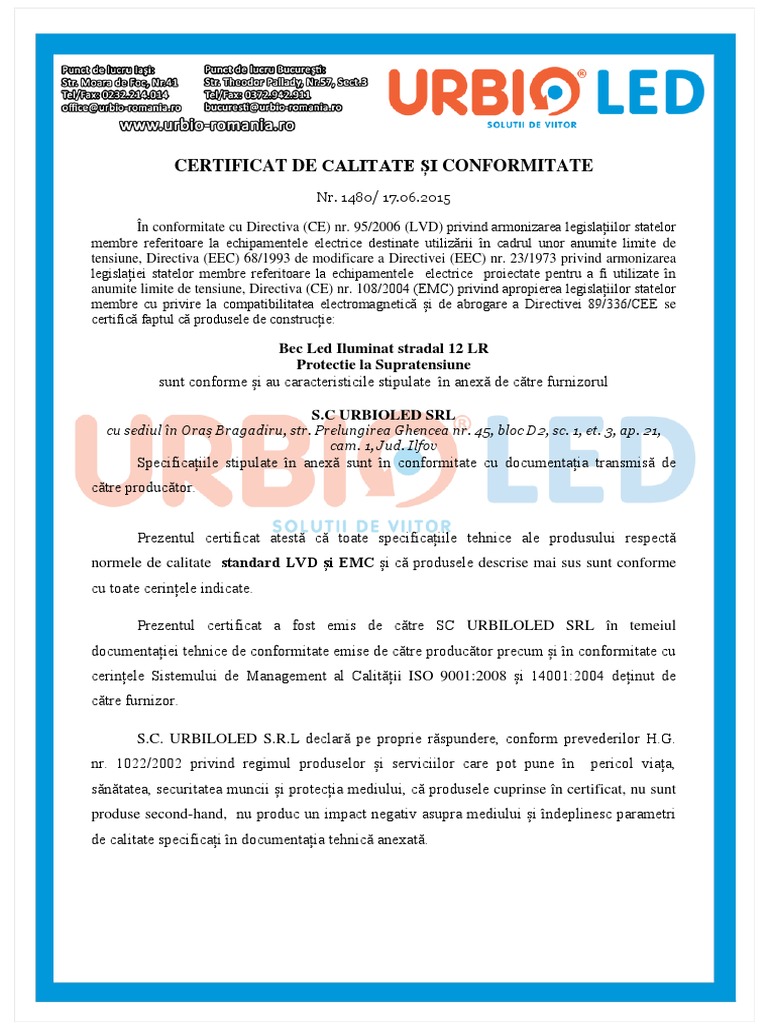 Certificat De Calitate Si Conformitate Al Furnizorului