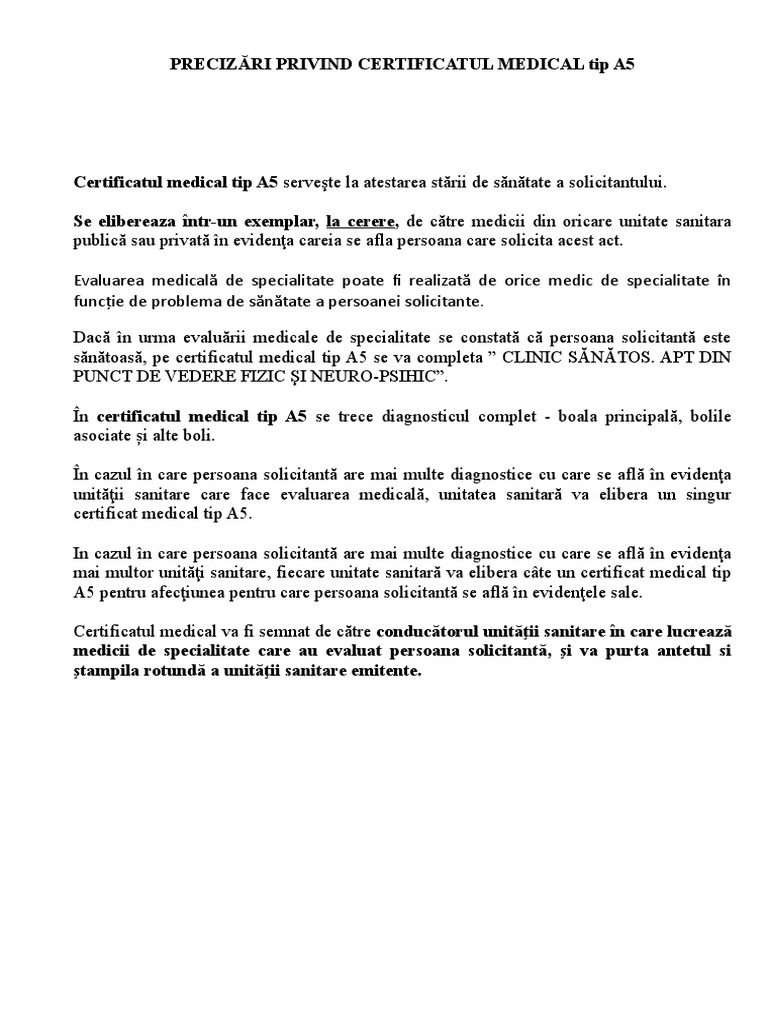 Certificat Medical Tip A5 Ieftin Si Rapid Standard Med