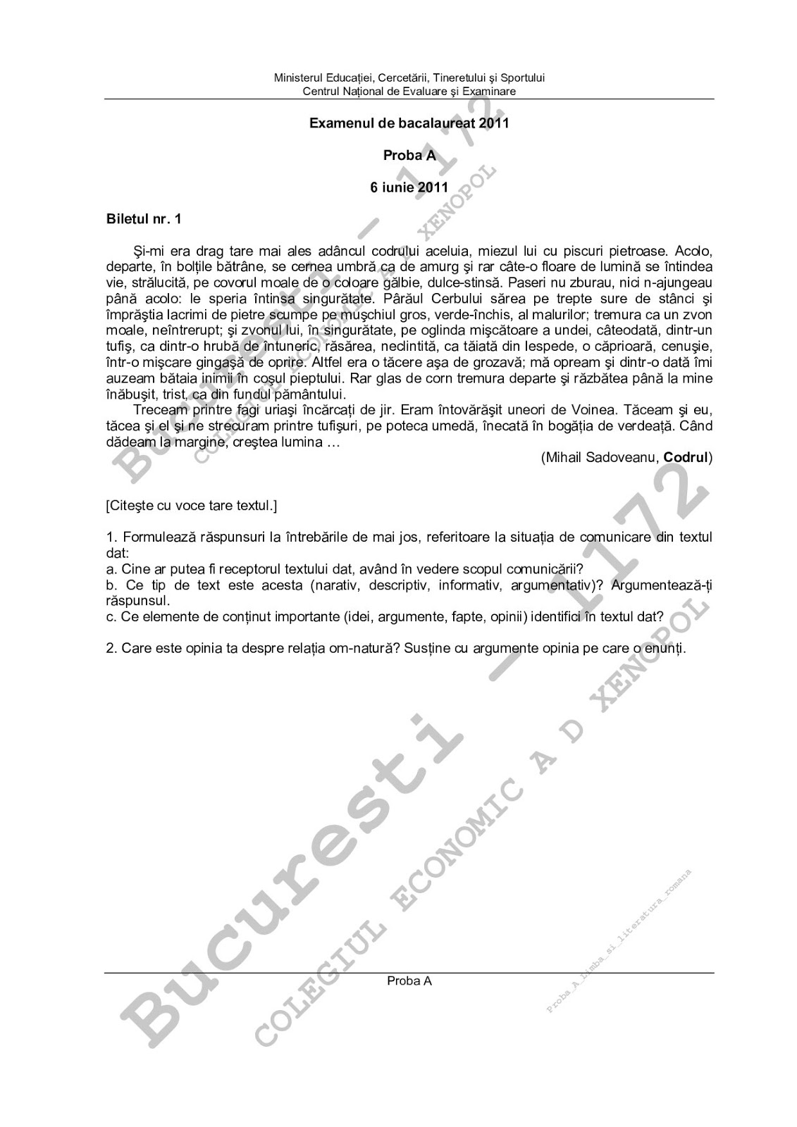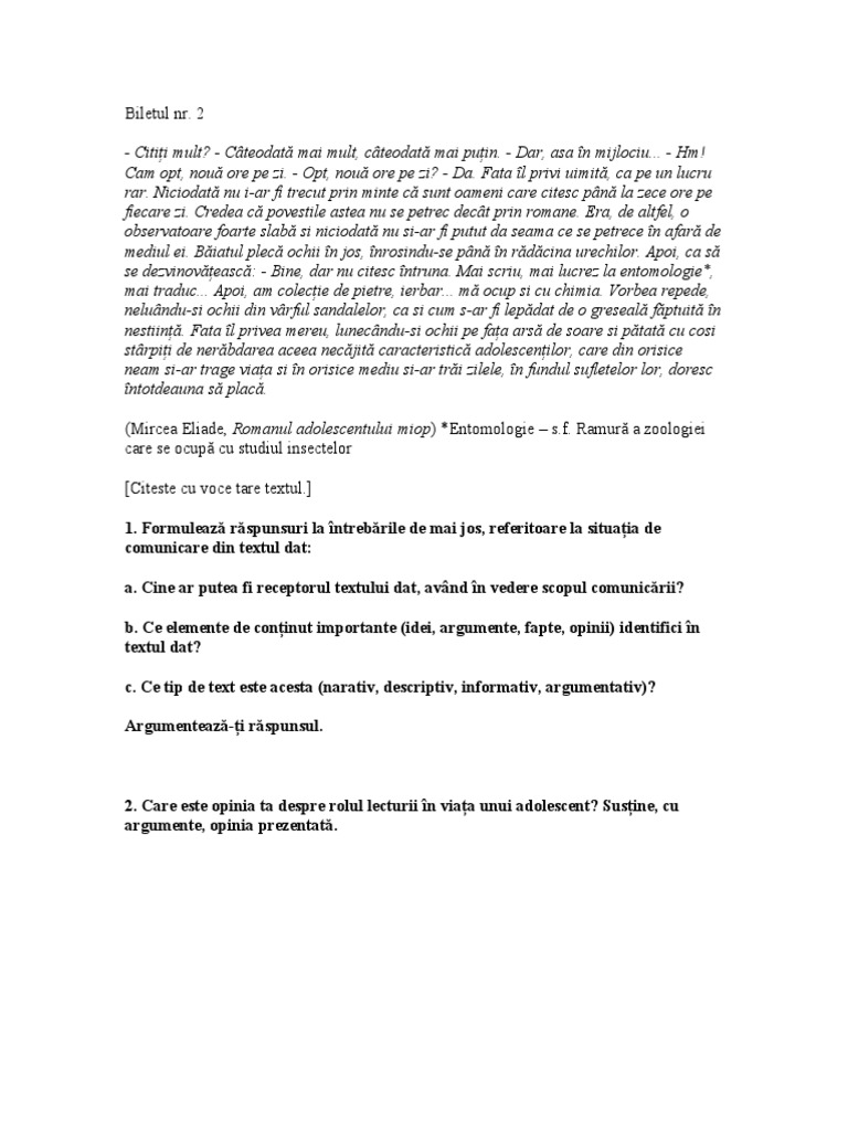 Bacalaureat Bilete Proba Orala 2010 Limba Romana Biletele 76 150