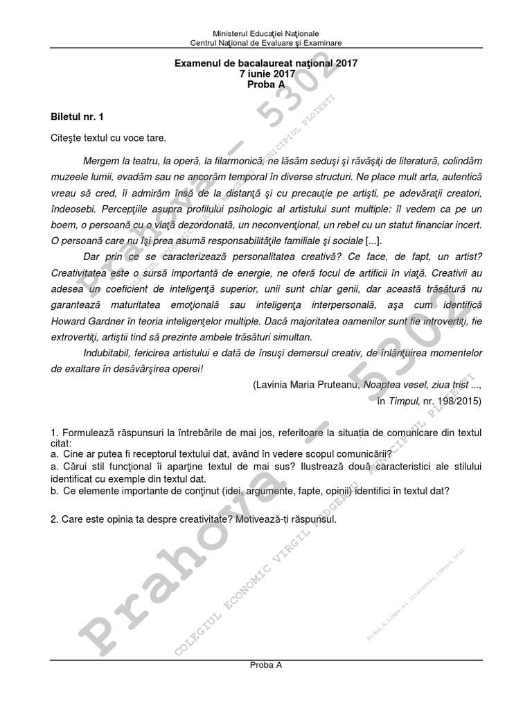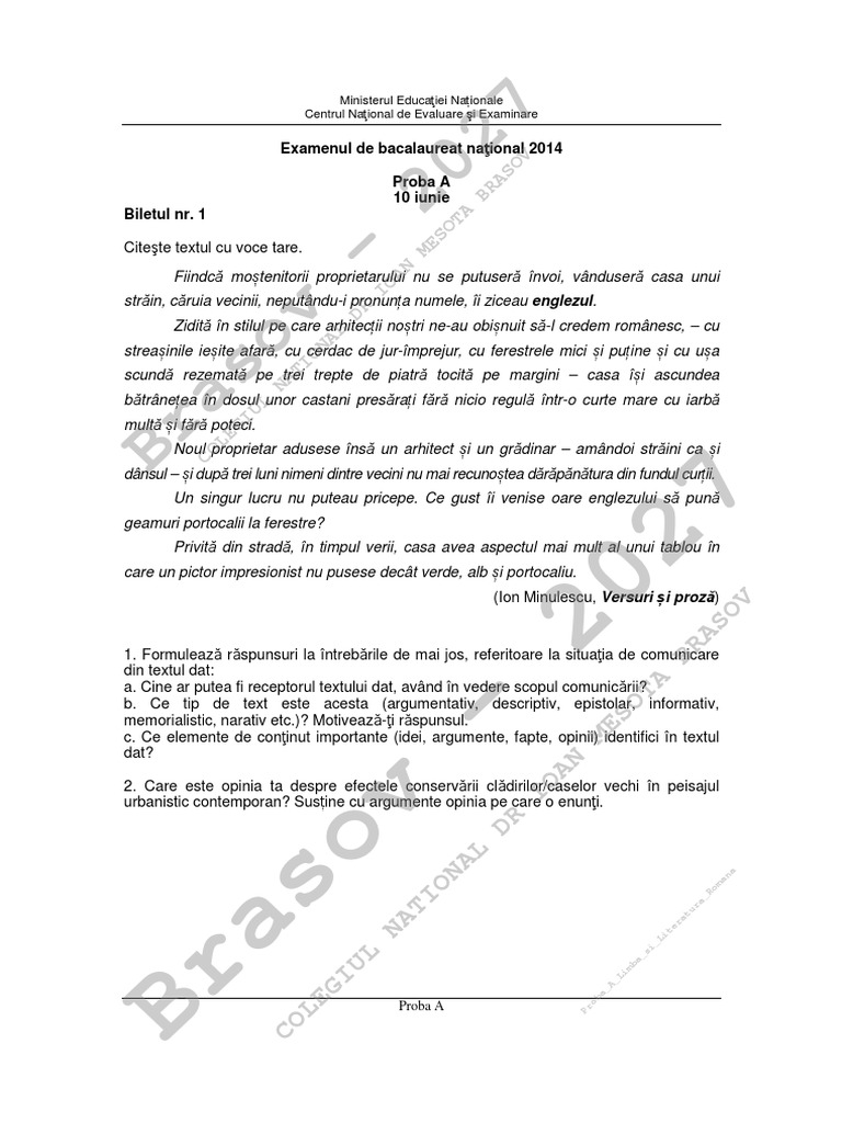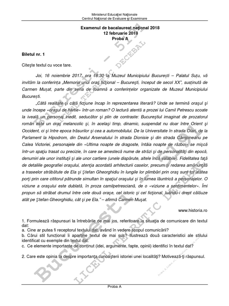 Exemplu Subiect Proba Orala Limba Romana Bacalaureat 2018