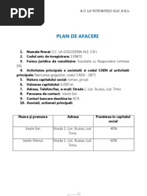 Proiect Sc Megafood Srl Domeniu De Activitate Restaurant Drept Comercial 382811