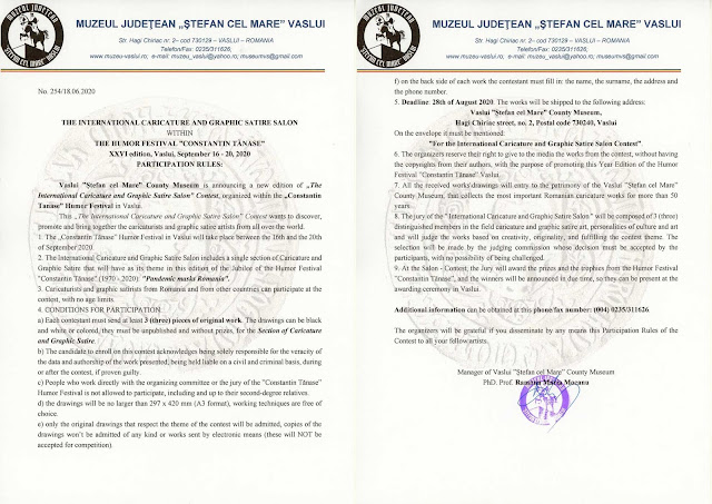 26th Constantin Tanase Humor Festival International Caricature And Graphic Satire Contest 2020 Vaslui Romania