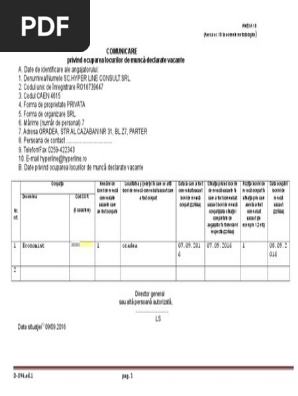 Comunicare Privind Ocuparea Locurilor De Muncă Declarate Pdf Document