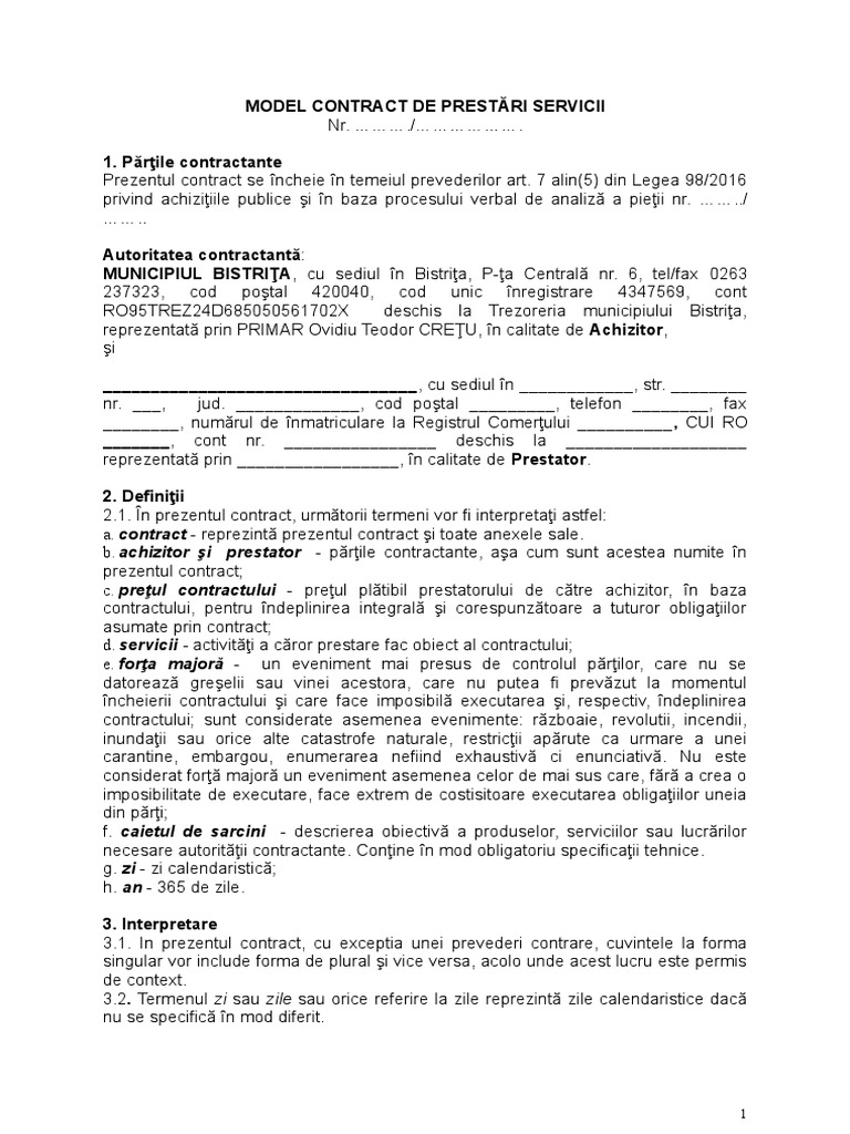 Contract De Prestǎri Servicii Model Orientativ Numărul