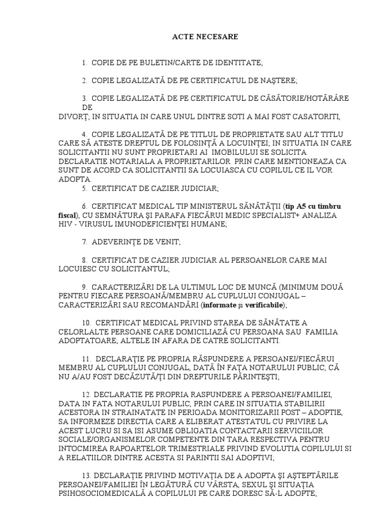 Acte Necesare Pentru Adoptie