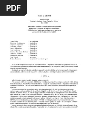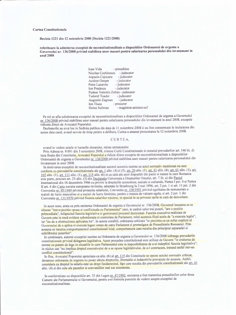 Decizia Nr 1221 2008 Referitoare La Admiterea Excepției De Neconstituționalitate A Dispozițiilor Ordonanței De Urgență A Guvernului Nr 136 2008 Privind Stabilirea Unor Măsuri Pentru Salarizarea Personalului Din Invățămant In Anul 2008 Lege5 Ro