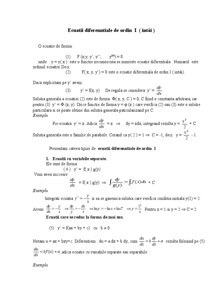Capitolul 1 Ecuatii Diferentiale De Ordinul ˆintai Rezolvabile Prin