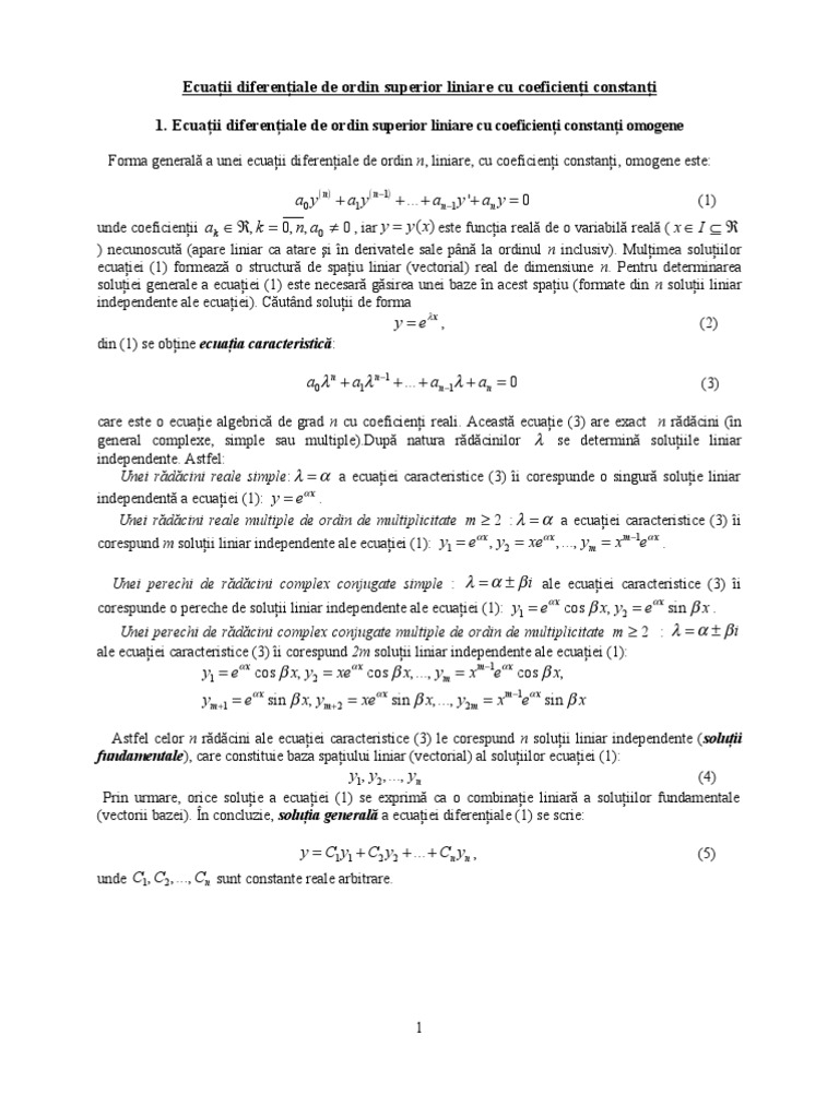 Curs Ecuatii Diferentiale De Ordin Superior Liniare Cu Coeficienti Constanti Matematica 295207