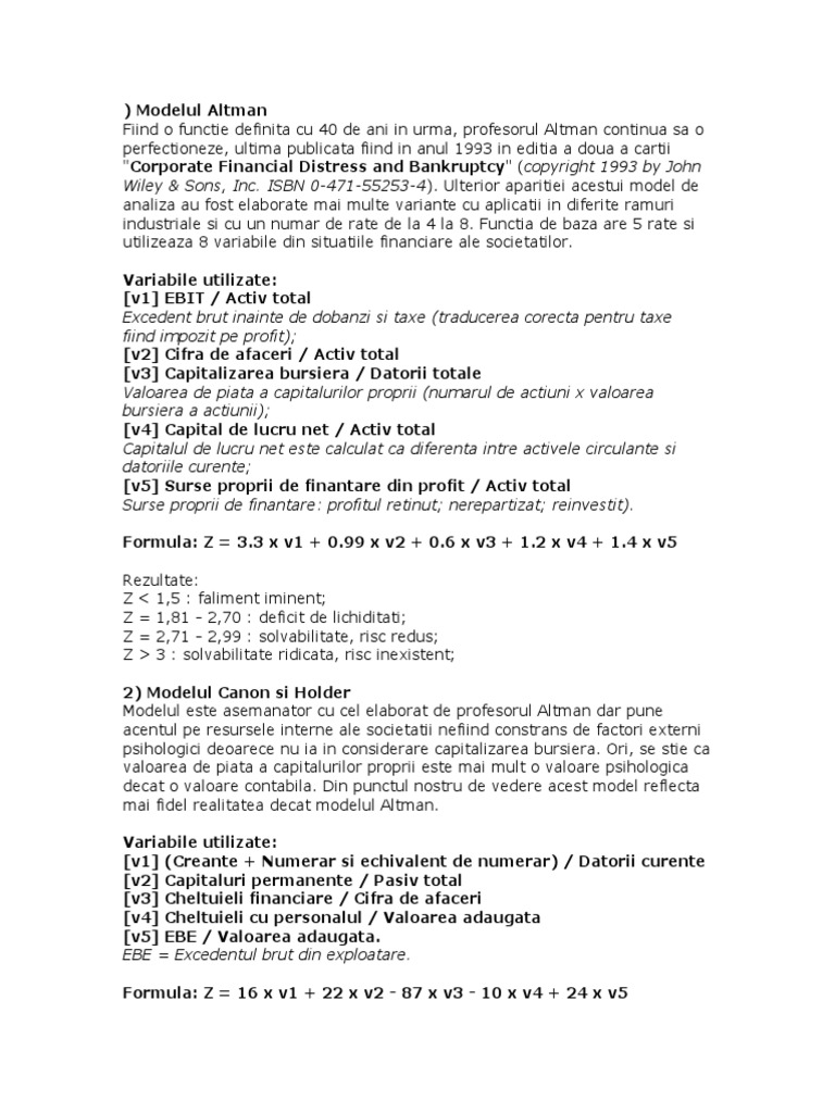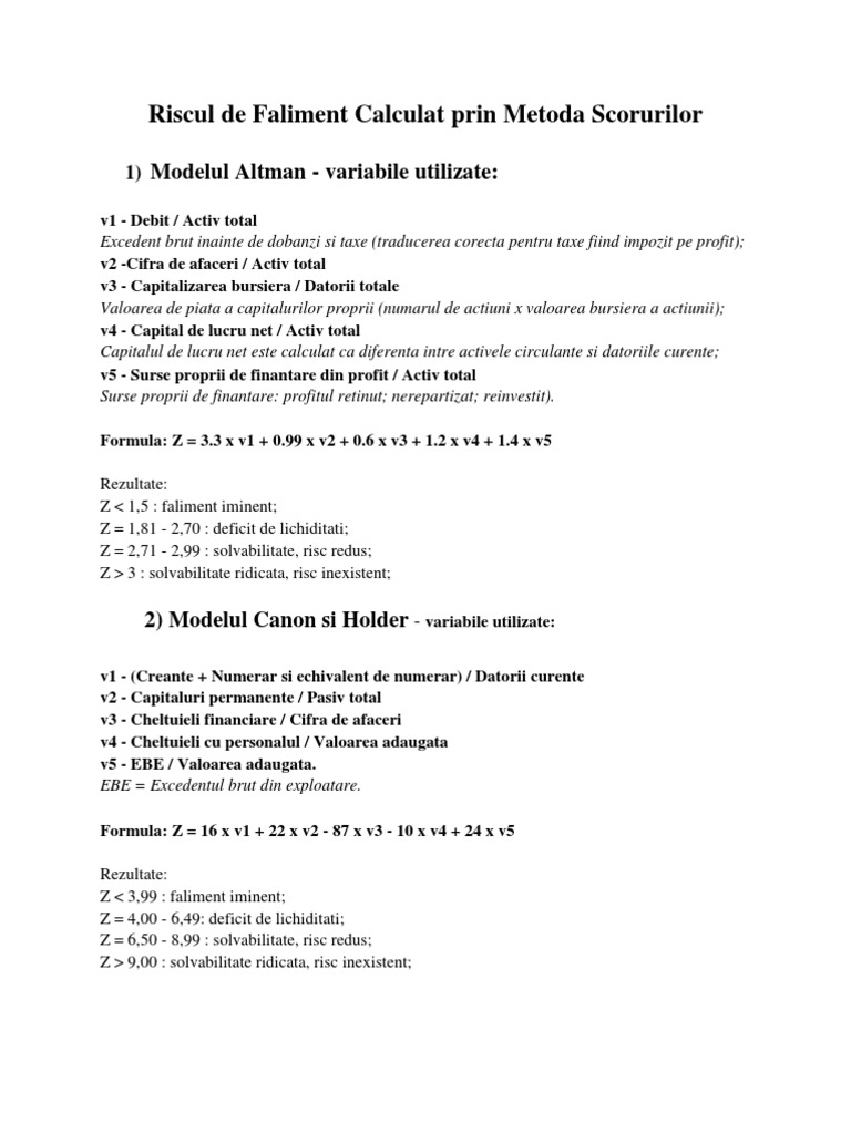 Riscul De Faliment Calculat Prin Metoda Scorurilor
