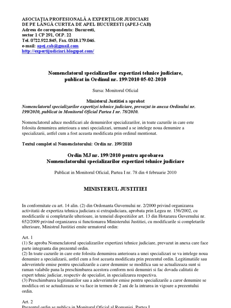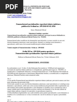 Nomenclatorul Specializarilor Expertizei Tehnice Judiciare In Romania