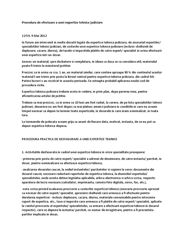 Procedura De Efectuare A Unei Expertize Tehnice Judiciare