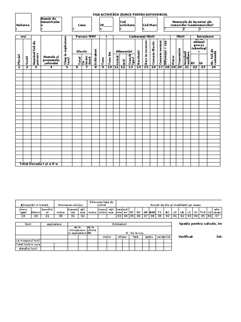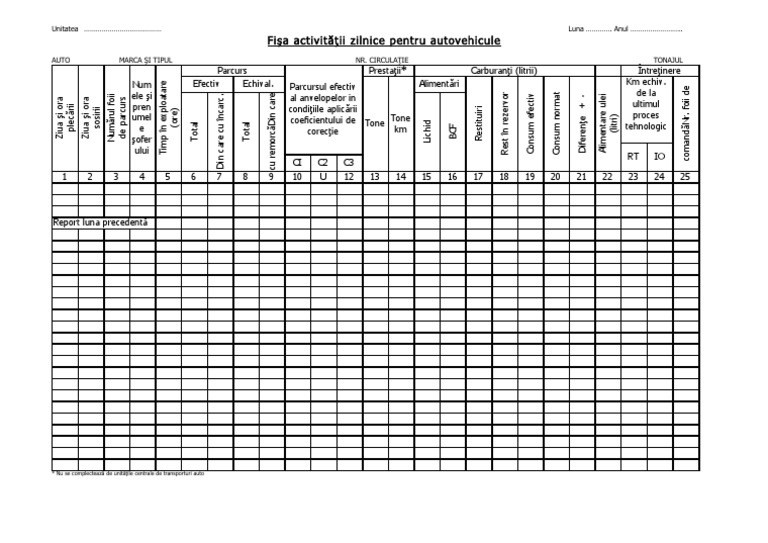Fisa Activitatii Zilnice Pentru Autovehicule Pdf