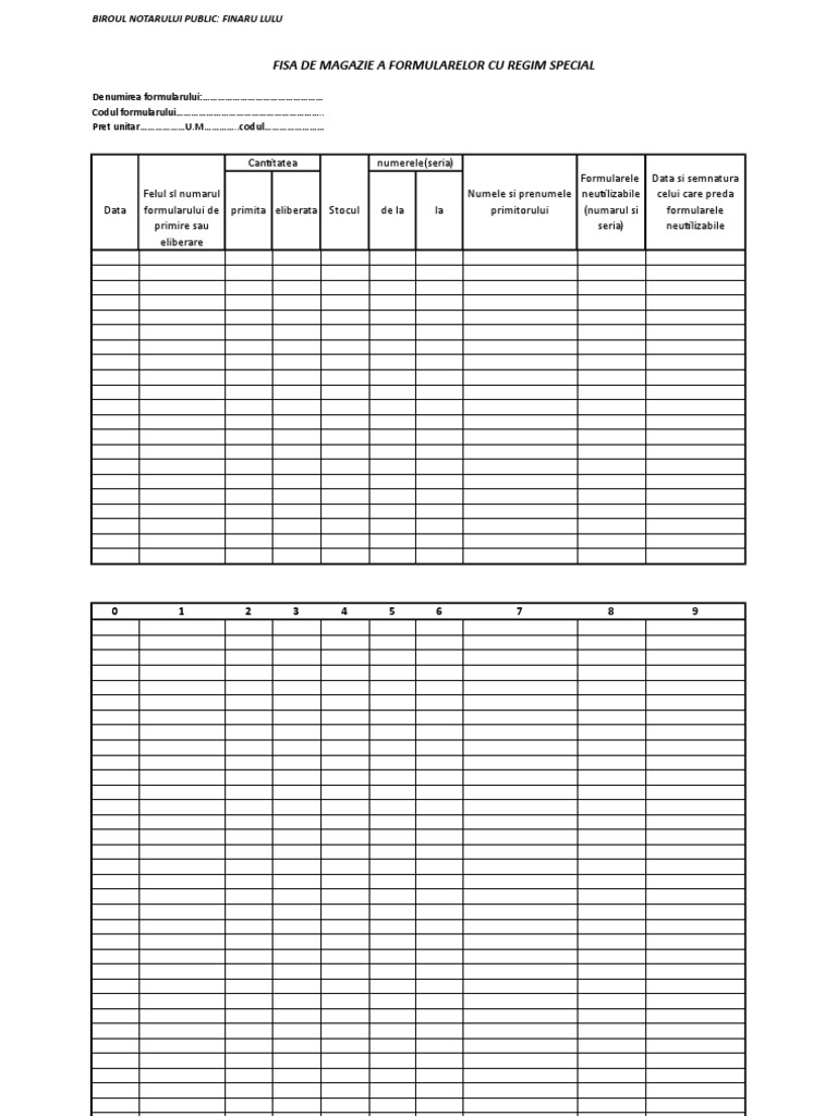 Fisa De Magazie A Formularelor Cu Regim Special Duplex Formular Preturi