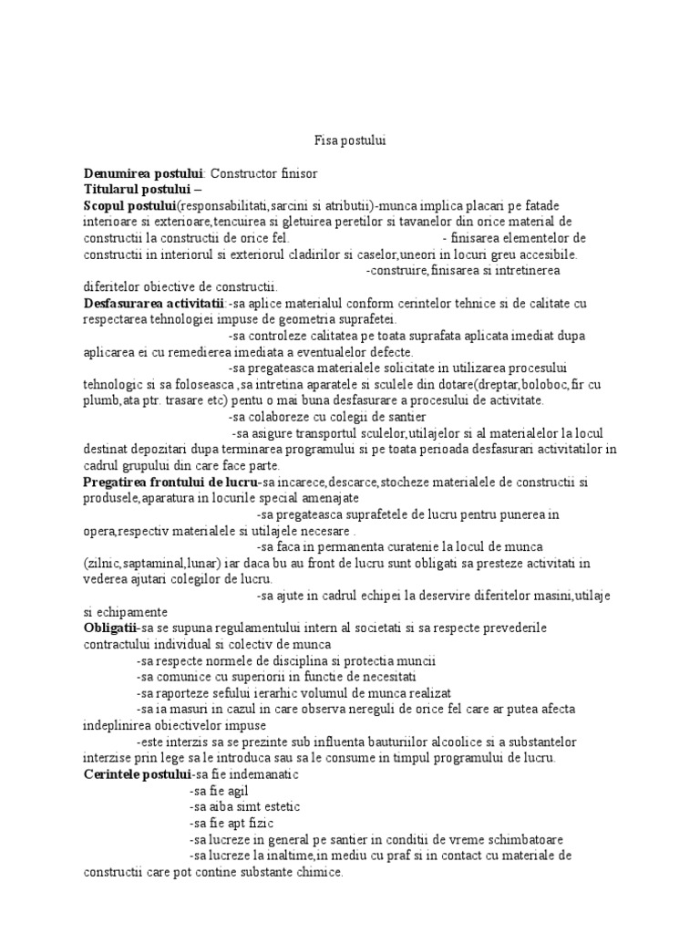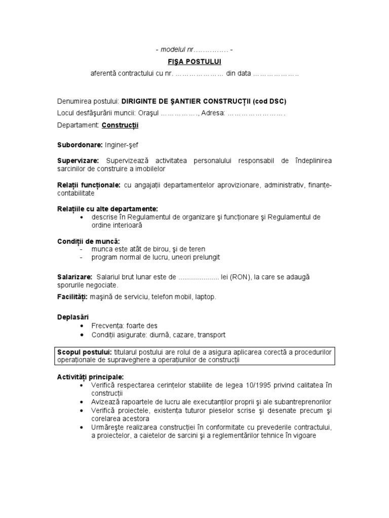 Fisa Post Inginer Constructor Ok Doc