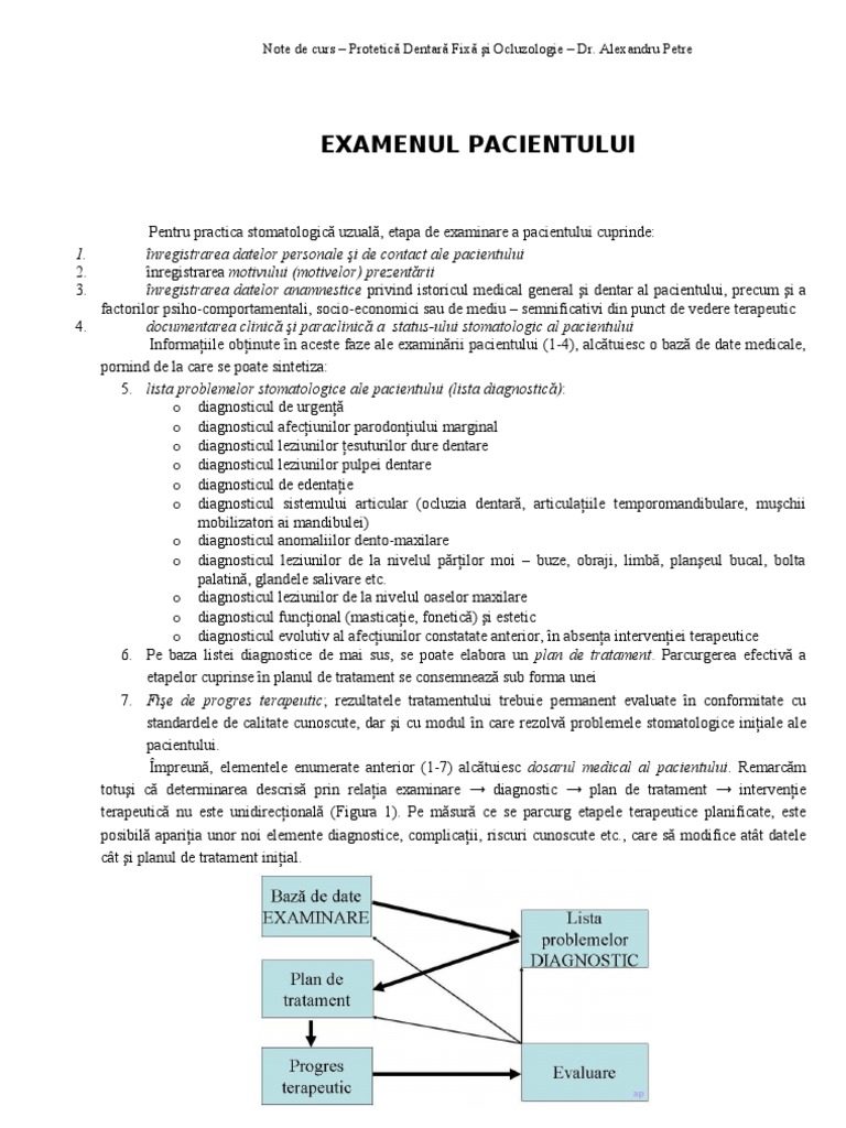 1 Examenul Clinic Al Pacientului Endo Si Exobucal Fisa Clinica Completarea Fisei Clinice