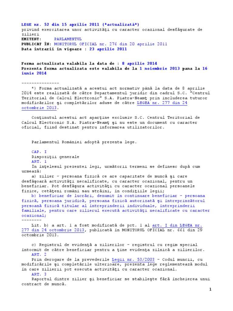 Legea Zilierilor Legea 52 2011 Actualizata 2019