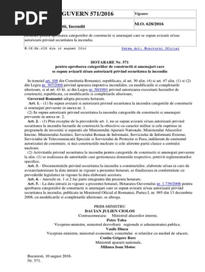 Hotărarea Nr 571 2016 Pentru Aprobarea Categoriilor De Construcții și Amenajări Care Se Supun Avizării și Sau Autorizării Privind Securitatea La Incendiu Lege5 Ro