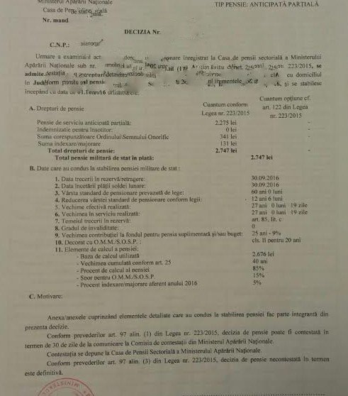 In cat timp vine decizia de pensie. In cat timp vine decizia de pensionare de la data depunerii dosarului. Prima dată trebuie să aştepte până vine prin poştă decizia propriu zisă de pensionare. 4 decizia casei teritoriale de pensii sau a casei de pensii sectoriale se comunica persoanei care a solicitat pensionarea in termen de 5 zile de la data emiterii. Data de la care primiți pensia depinde și de tipul de pensie dar și de data la care ați depus cererea de pensionare articolul 104 din legea 263 2010 arată la art 2 că pensiile se stabilesc prin decizie a casei teritoriale de pensii sau a casei de pensii sectoriale după caz emisă în condițiile prevăzute de prezenta lege și se acordă de la data înregistrării cererii.