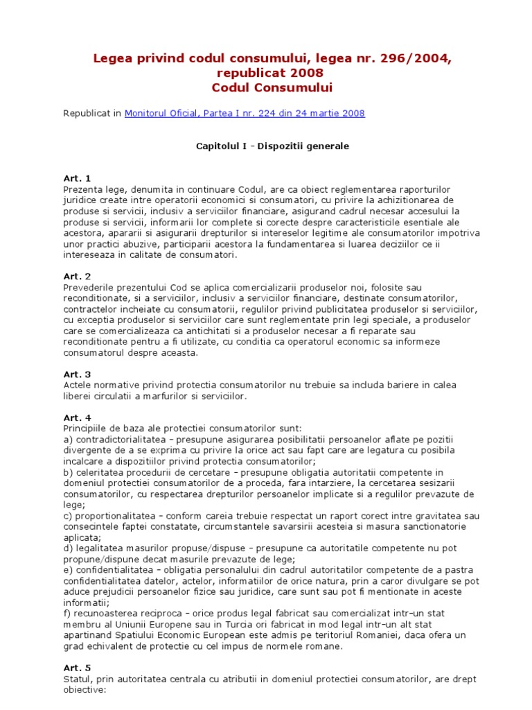 2 în cuprinsul legii nr. 296 2004 republicat 2008 codul consumului republicat in monitorul oficial partea i nr.