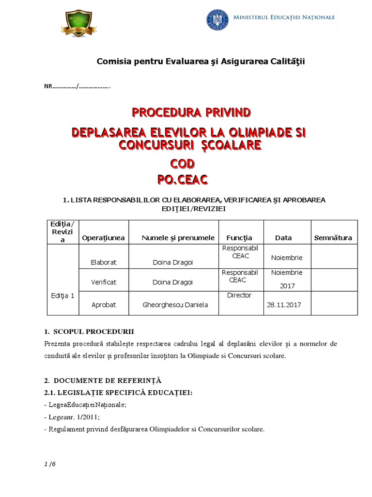 Procedura Operationala Privind Deplasarea La Olimpiade Si Concursuri Autosaved