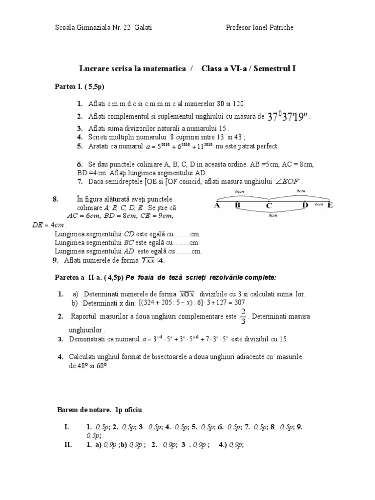 Model Teză Matematică Clasa A 6 A Pe Semestrul 1 Barem Rezolvare Jitaruionelblog Pregatire Bac Si Evaluarea Nationala 2020 La Matematica Si Alte Materii Materiale Lectii Formule Exercitii Rezolvate Matematica
