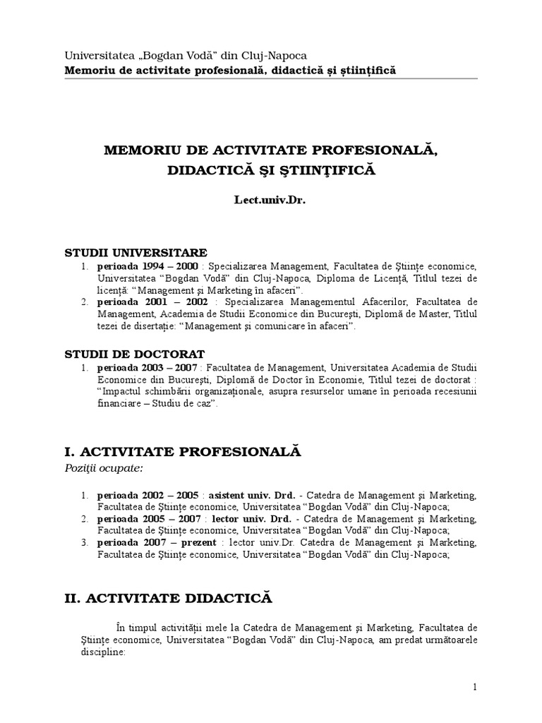 Model Memoriu De Activitate Doc Document