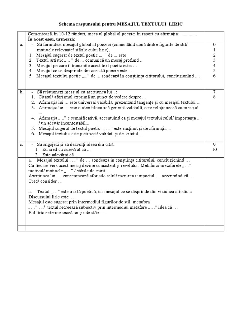 Mesajul Unui Text Liric Schema