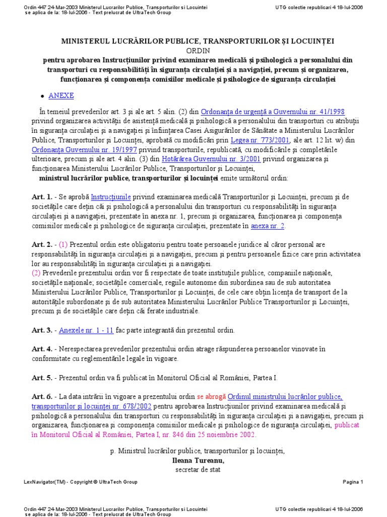 Proiectul De Ordin Al Ministrului Transporturilor Pentru Aprobarea Normelor Privind Procedura De Agreare A Unităţilor Medicale Si Sau Psihologice Care Efectuează Examinări Pentru Personalul Din Transporturi Cu Atribuţii In Siguranţa Transporturilor A