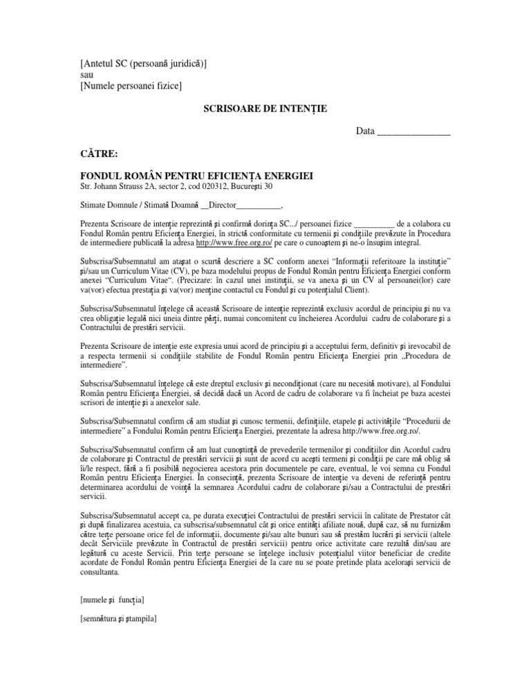 Model Scrisoare De Intentie