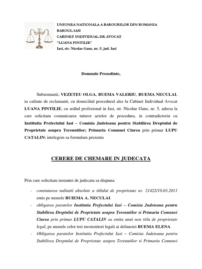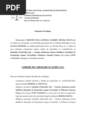Cerere De Chemare In Judecata Asociatii De Proprietari Recuperare Cheltuieli De Intretinere Doc