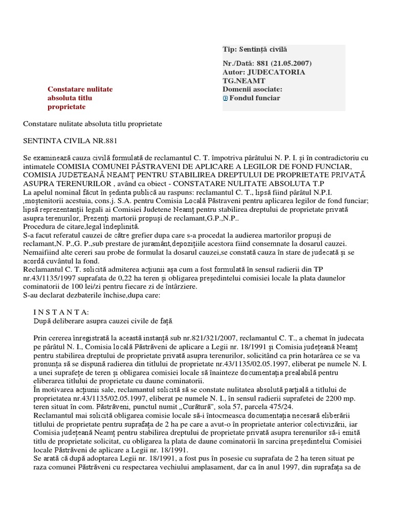 Constatarea Nulitatii Absolute Titlului De Proprietate Projurista Ro
