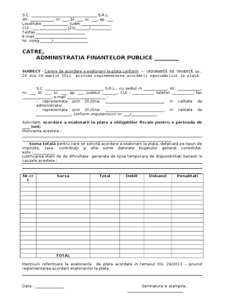 Cerere Esalonare Plata Doc