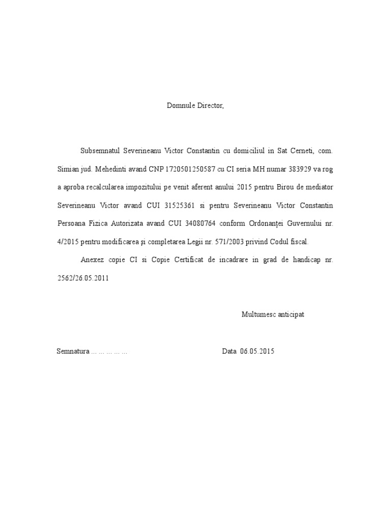 Model Cerere Scutire Impozit Persoane Cu Handicap