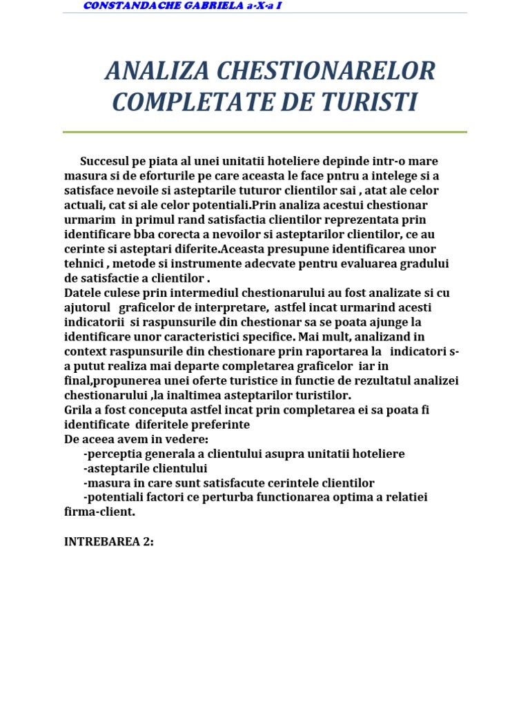 Analiza Grafica A Chestionarului Pentru Turisti