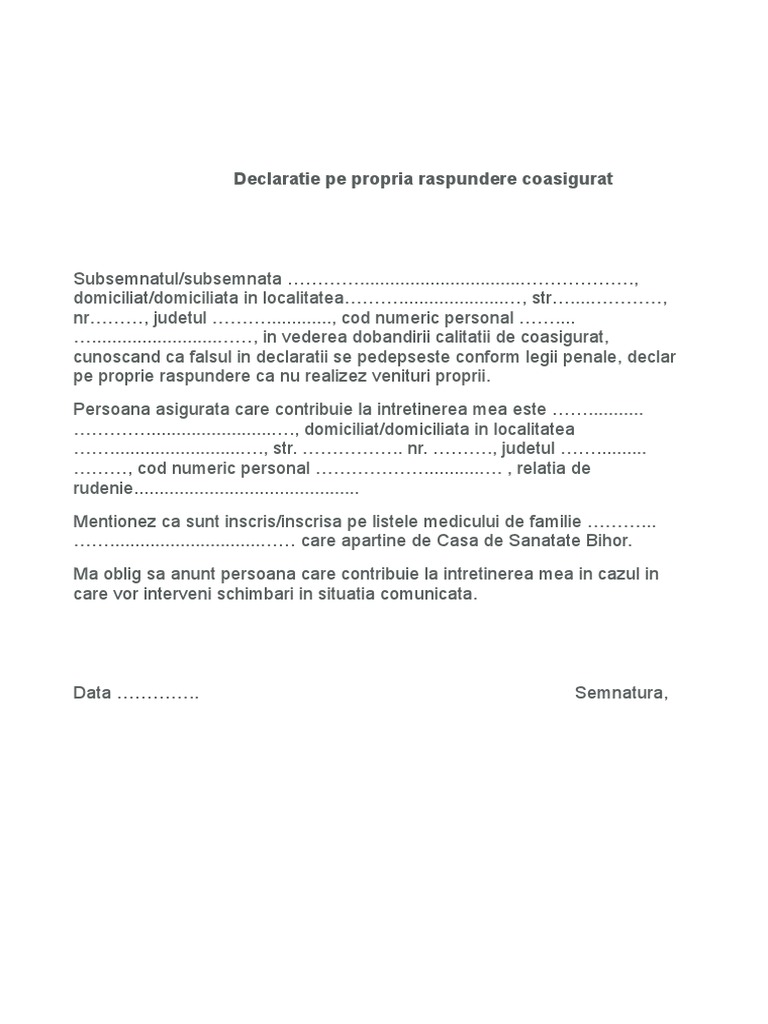 Declaratie Pentru Coasigurat Sanatate